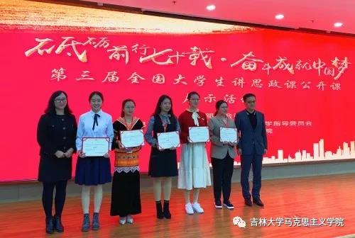 于小淳、李浩源、刘芙彤团队在纪明、郝玲玲、王勇、王成老师指导下,荣获“砥砺前行七十载奋斗成就中国梦”——第三届全国大学生讲思政课公开课展示活动决赛二等奖。